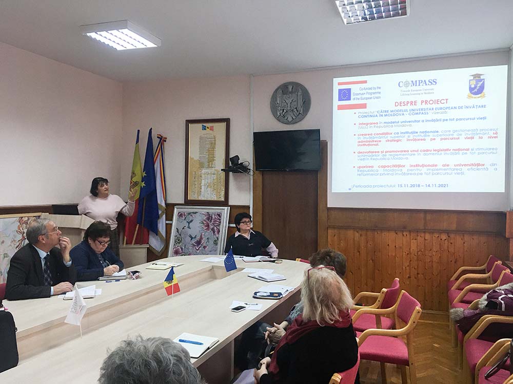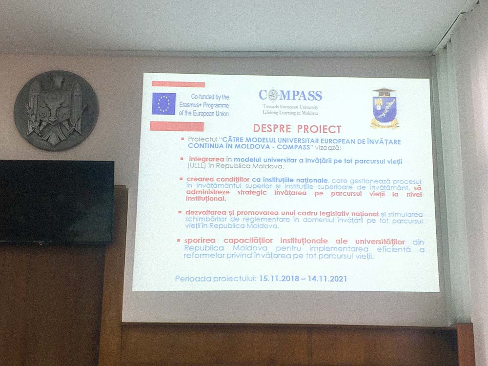 La 18 noiembrie 2019 în Universitate s-au făcut totalurile primului an de activitate a Proiectului COMPASS, „CĂTRE MODELUL UNIVERSITAR EUROPEAN DE ÎNVĂȚARE CONTINUA ÎN MOLDOVA – COMPASS”, susținut financiar de programul european ERASMUS +.