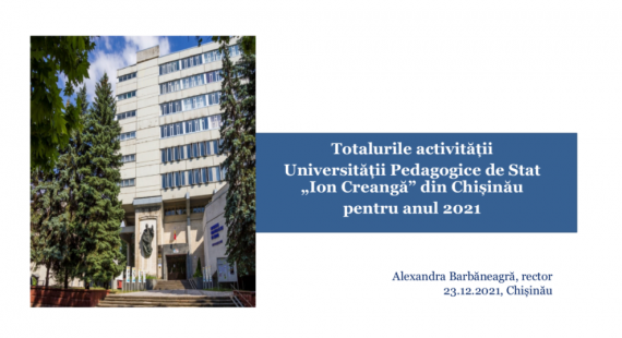 În cadrul ședinței extinse a Senatului UPSC din 23 decembrie 2021, Rectorul Alexandra BARBĂNEAGRĂ, conf. univ., dr., a prezentat Totalurile activității Universității Pedagogice de Stat ”Ion Creangă” din Chișinău pentru anul 2021, perioadă care s-a suprapus cu primul an de mandat al noii echipe manageriale a instituției. Raportul a fost […]
