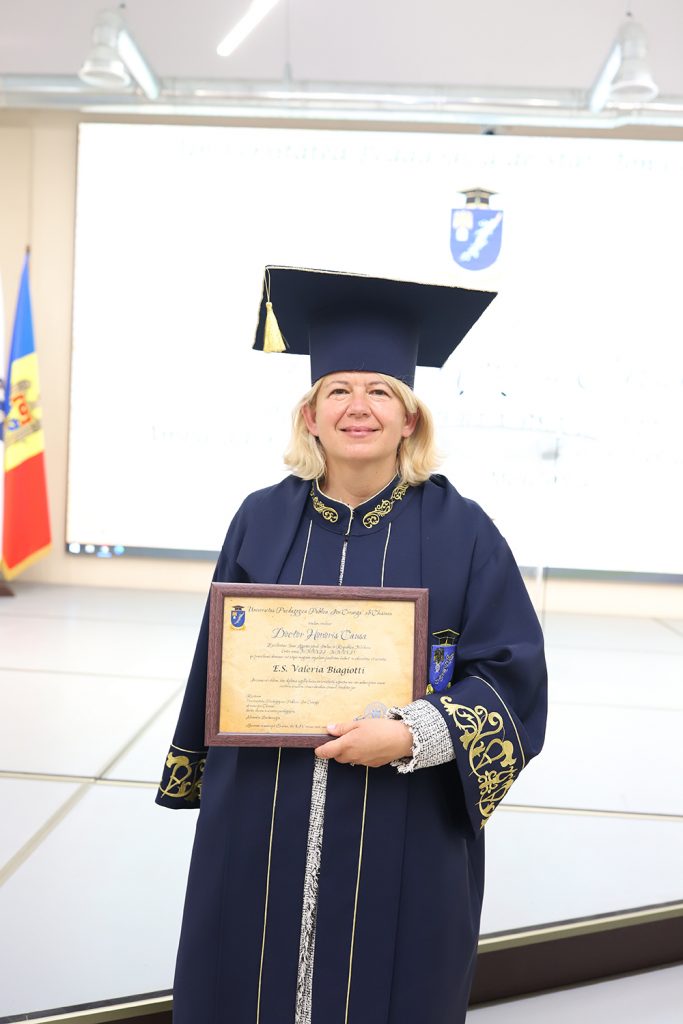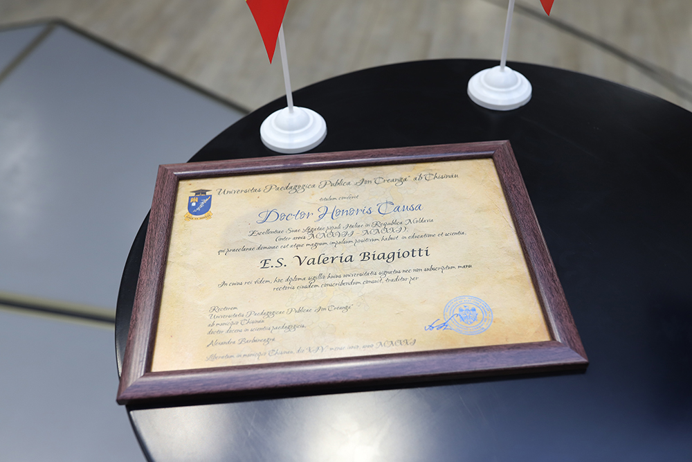 În data de 14 iunie 2021, senatul Universității Pedagogice de Stat „Ion Creangă” din Chișinău a avut marea onoare de a acorda titlu Doctor Honoris Causa dnei Valeria BIAGIOTTI, Ambasador Extraordinar și Plenipotențiar al Italiei în Republica Moldova în perioada 2017-2021. Onorificul titlu i-a fost conferit pentru rezultate remarcabile în consolidarea relațiilor moldo-italiene și a contribuției aduse în dezvoltarea procesului de studii al Universității.