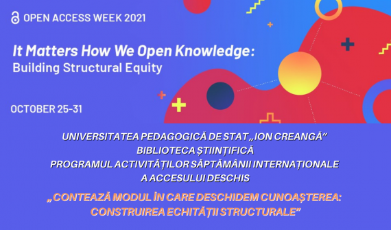 Biblioteca Științifică a UPSC, în Săptămâna Accesului Deschis la informație, ediția 2021, stabilită pentru perioada 25 – 31 octombrie, va organiza o serie de webinare dedicate utilizării resurselor informaționale, creării și gestionării Profilurilor cercetătorilor în ORCID şi Google Scholar pentru cadrele didactice și nondidactice, cercetători științifici, doctoranzi și masteranzi ai […]