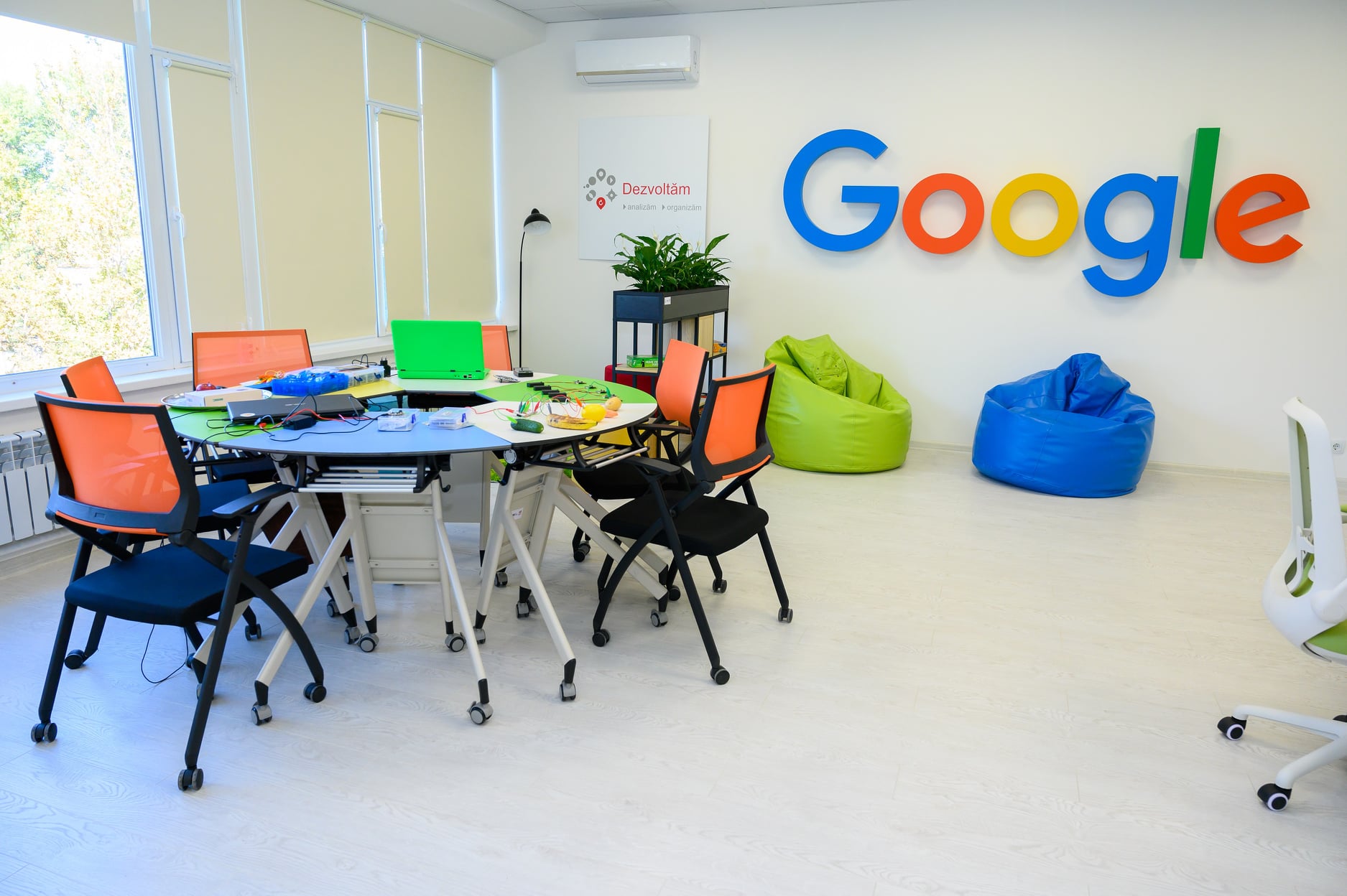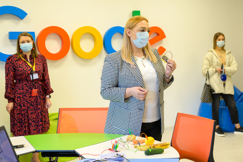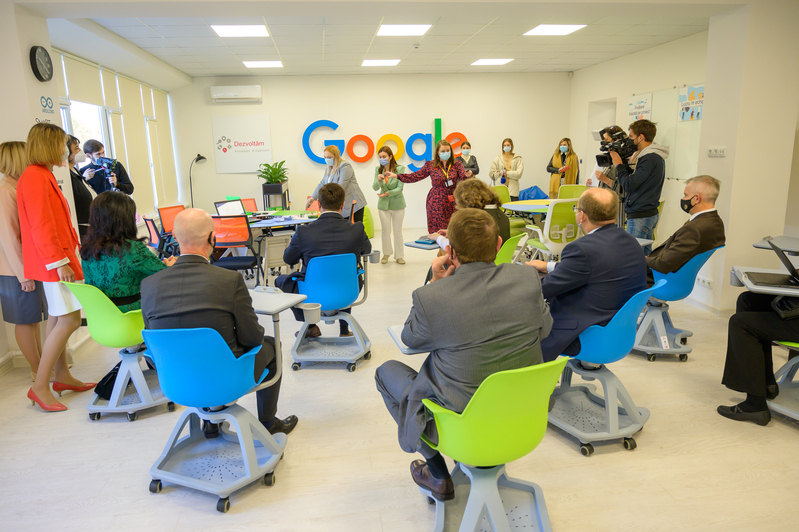 Laborator demonstrativ Google for Education este dotat cu Google Chromebooks (laptopuri destinate exclusiv procesului educațional K12), stație de încărcare mobilă, ecran digital interactiv mobil, precum și acces gratuit pentru școlile din Moldova la 39 de instrumente digitale Google Workspace for Education, inclusiv Gmail, Classroom, Meet, Drive, Docs, Slides, Forms, Jamboard, etc.