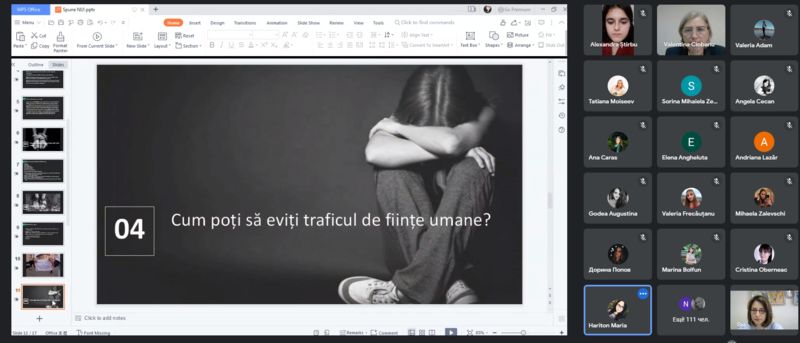 Mulțumim mult studenților facultății ȘEI pentru participare activă și implicare în realizarea și prezentarea posterelor digitale pe tema „Spune Nu traficului de ființe umane!”.