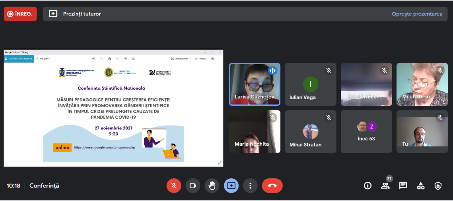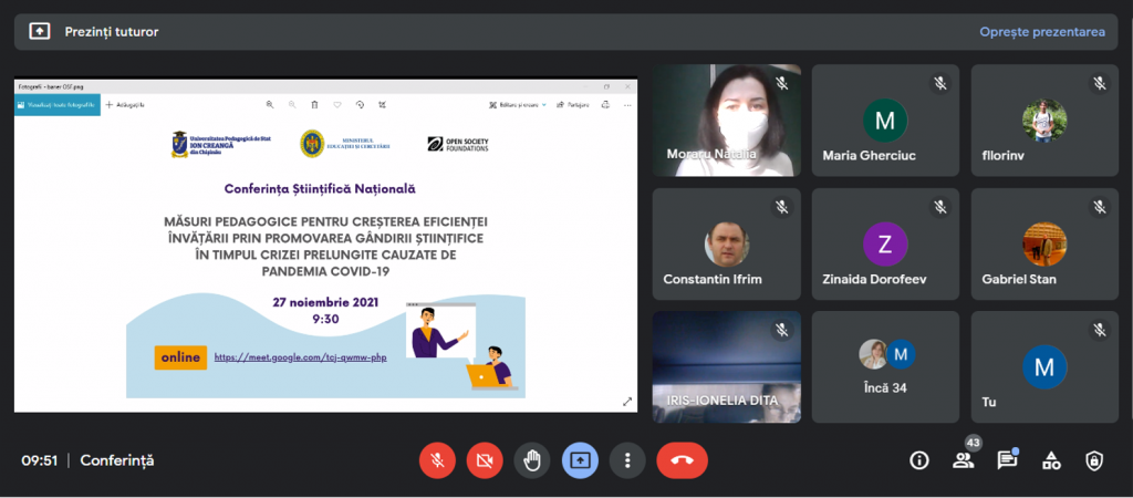În format online, așa cum era prevăzut, azi, 27 noiembrie UPSC a desfășurat Conferința științifică națională: „Măsuri pedagogice pentru creșterea eficienței învățării prin promovarea gândirii științifice în timpul crizei prelungite cauzate de pandemia Covid-9”, organizată cu suportul Open Society Foundations.