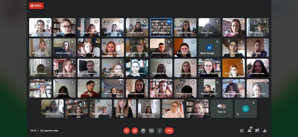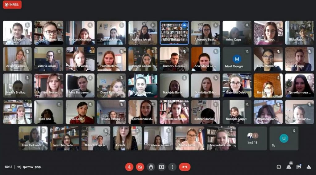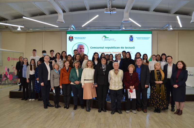 De la ecran, cei 57 de concurenți și din sală – trei echipe de cititori admirabili ai liceelor ,,Prometeu Protalent” cu Larisa SILVESTRU, Tatiana MELNIC și Zinaida VÂRLAN, ,,Spiru Haret” cu Tamara GÎNGA și ,,Iulia Hasdeu” cu Rodica JĂPĂLĂU, studenți și profesori ai Facultății Filologie și Istorie s-au constituit într-o prietenoasă echipă de lectură și-au interogat autorul cu proba de identitate a cititorului implicat în textul literar-artistic.
