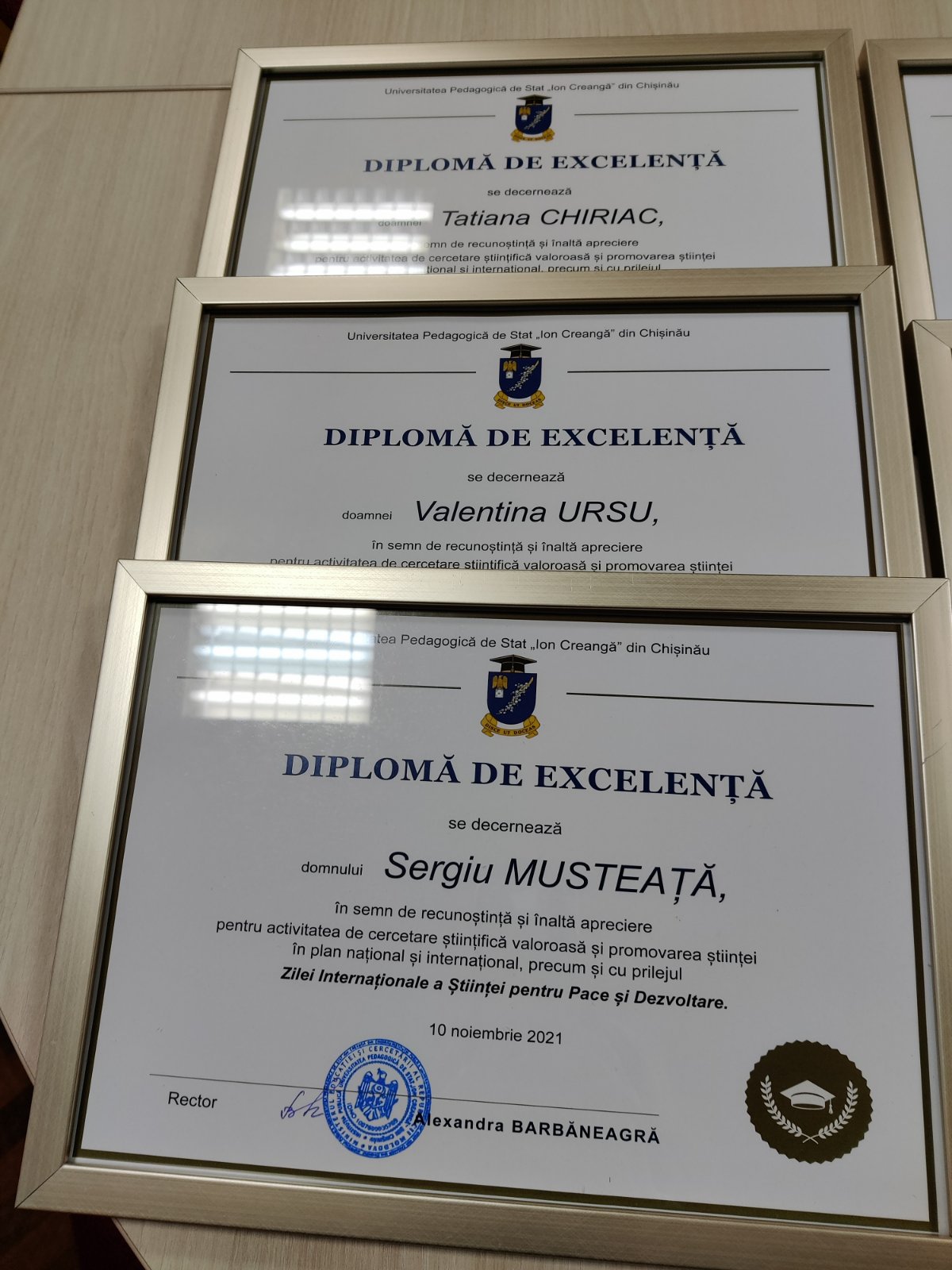 Administrația UPSC exprimă sincere felicitări și deosebită recunoștință pentru activitatea remarcabilă următoarelor personalități notorii: Sergiu MUSTEAȚĂ, Victoria GONȚA, Sergiu SANDULEAC, Olga COSOVAN, Tatiana CHIRIAC, Angela GROZA, Nicolae BALMUȘ, Octavian MUNTEANU, Valentina URSU, Valentina COJOCARU, Silvia CHICU, Aurelia RACU, Tatiana CARTALEANU, Ecaterina SCHERLET, Ala SUSARENCO.