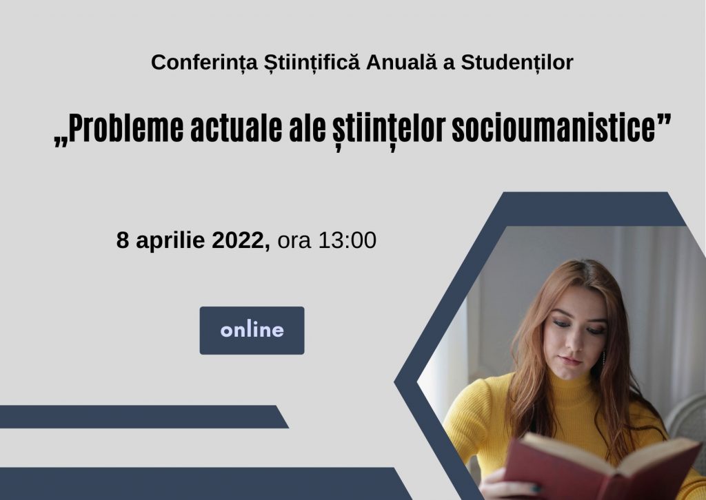 „Probleme actuale ale științelor socioumanistice”, care va avea loc pe 8 aprilie 2022, ora 13:00.