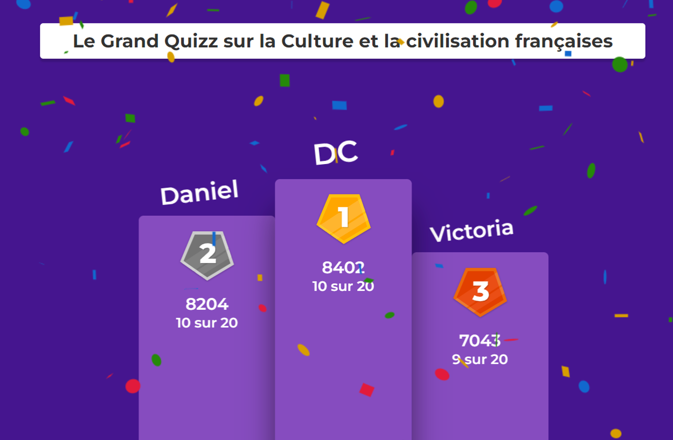 Nous félicitons tous les participants et en particulier les gagnants du Quizz!