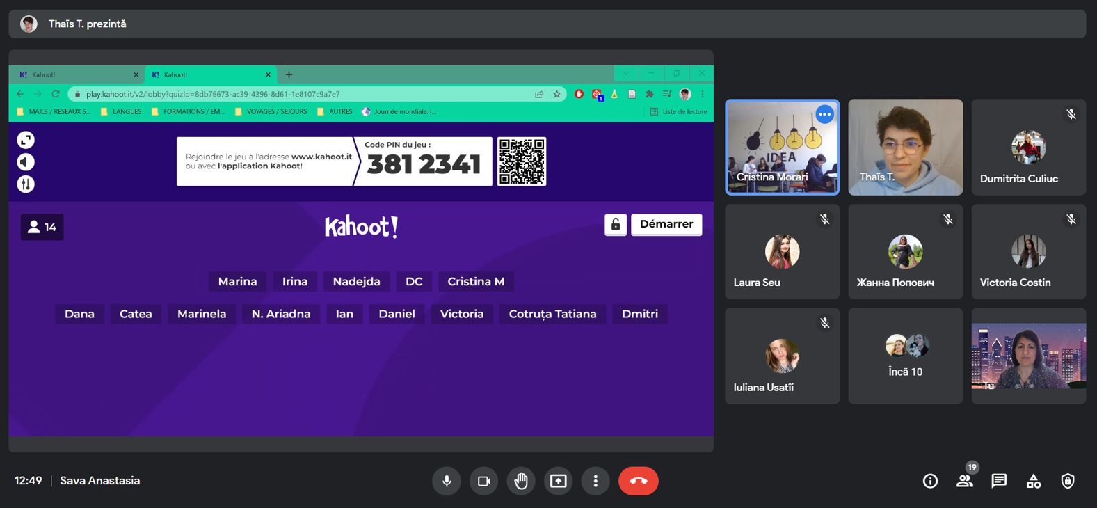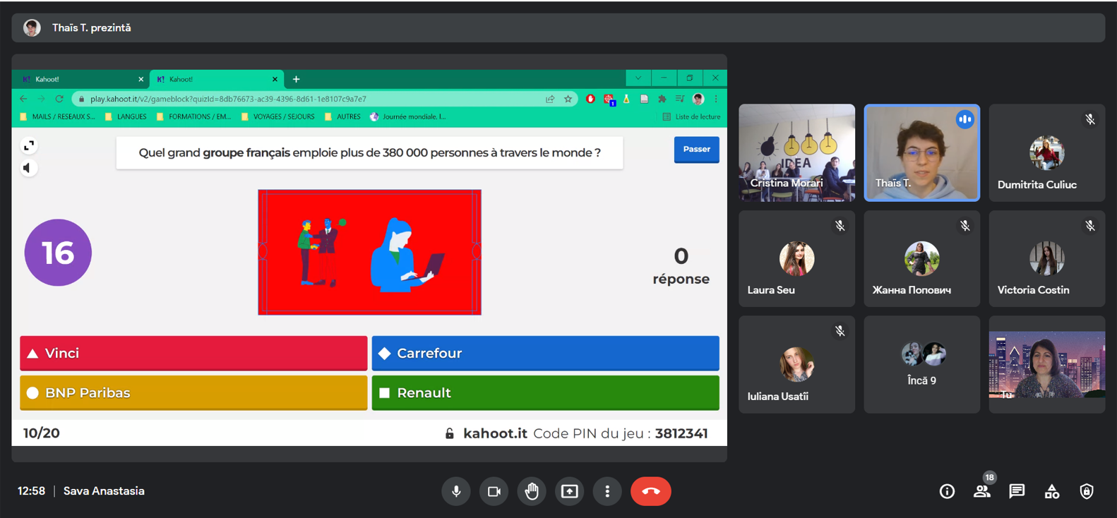 În contextual celebrării Zilelor Francofoniei, la data de 23 martie 2022 Catedra Filologie Romanică în parteneriat cu Lectoratul francez în republica Moldova reprezentat de lectorul stagiar Thais Thiburs au organizat Concursul online Kahoot „Marele quiz despre cultura și civilizația franceză” destinat studenților francofoni și având ca obiective: