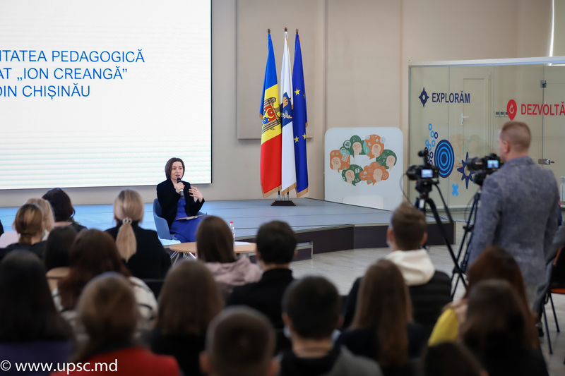 Studenți ai mai multor Universități cu profil pedagogic din țară, de la Bălți, Cahul, Comrat, Taraclia și din Chișinău s-au bucurat de posibilitatea de a discuta direct, dar și online, cu Doamna Maia SANDU, car le-a inspirat optimism, încredere și a răspuns tuturor întrebărilor. A fost un dialog amical, degajat. Reprezentanta statului a îndemnat studenții să se implice activ în dezvoltarea educației și să devină promotori ai principiului de meritocrație în domeniu și a asigurat că statul va căuta mecanisme pentru a încuraja tinerii să aleagă pedagogia – prin condiții bune de studii, de muncă și de trai, prin burse și salarii pe potriva efortului lor.