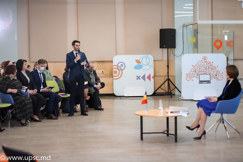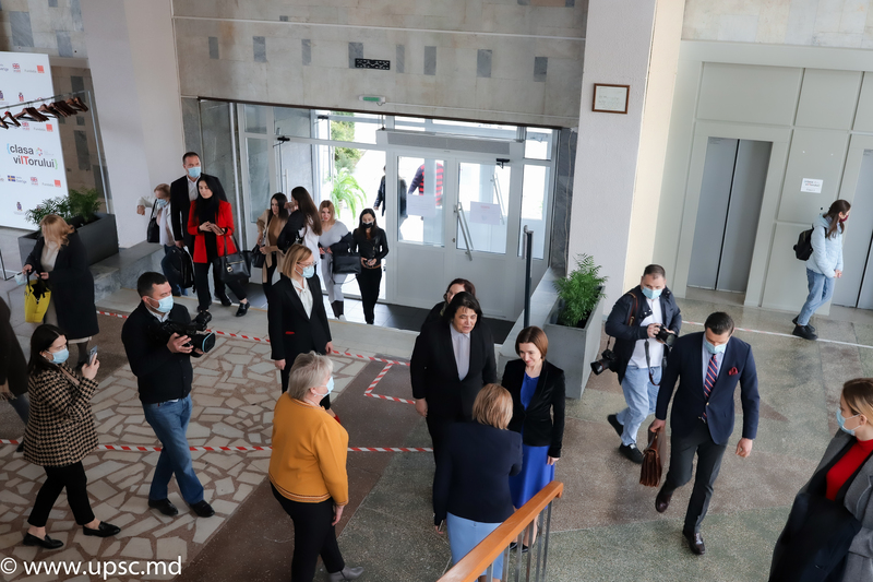 Evenimentul a fost încununat de un discurs inspirațional al Doamnei Președintă, care a evidențiat importanța desăvârșită a școlii în viața noastră și rolul determinant al pedagogului în sec. XXI, care este unul dintre factorii ce dirijează interesul tinerilor pentru disciplina predată. De asemenea, s-a discutat despre calitățile esențiale ale unui profesor eficient, una dintre ele fiind și abilitatea de a pregăti elevii pentru viitor. În acest context, Doamna Președintă și doamna Valentina CHICU, Consilier al Preşedintelui Republicii Moldova în domeniul Educației și Cercetării, au purtat o discuție sinceră și directă cu tinerii prezenți, care au adresat întrebări referitor la problemele cu care se confruntă în mediul universitar și despre cum le-ar putea rezolva.