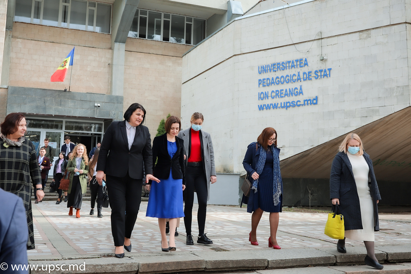 Doamna Alexandra BARBĂNEAGRĂ a întâmpinat călduros oaspeții de la Președinție și, în cuvântul de salut, a subliniat necesitatea racordării aspectelor fundamentale din domeniul Științe ale Educației vizavi de noile tendințe de modernizare pentru a spori interesul către studii și a însoțit oaspeții într-un tur al Universității. De asemenea, Președinta statului a vizitat CNIDE „Clasa Viitorului” și a apreciat înalt activitățile desfășurate învederea modernizării domeniului Educației din Republica Moldova.