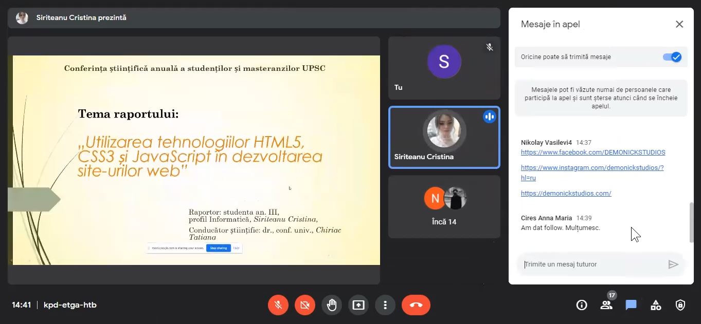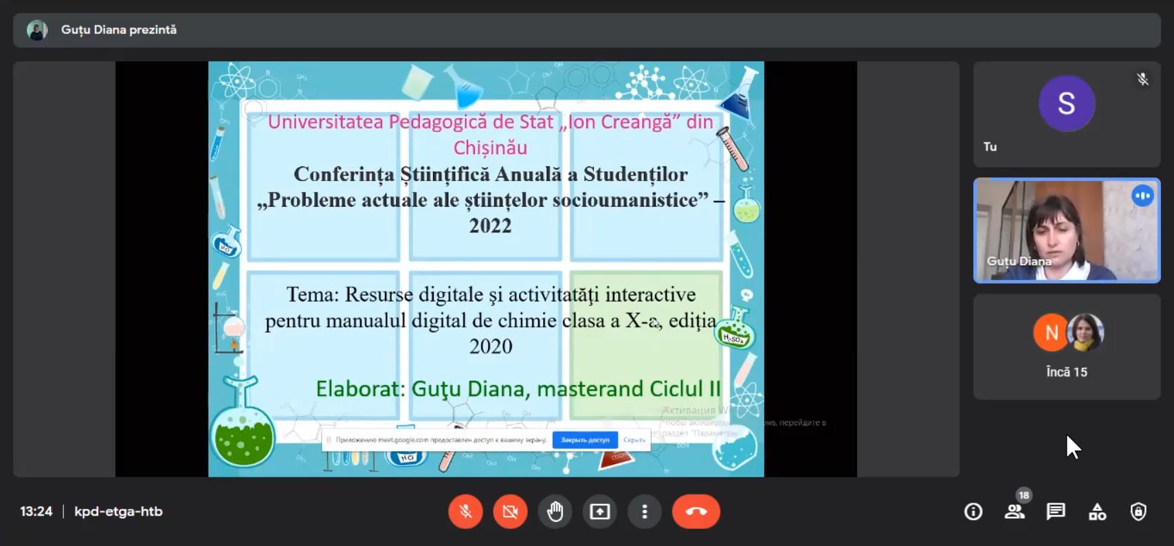 Conferința Științifică Anuală a Studenților și Masteranzilor „Probleme actuale ale științelor socioumanistice”, în regim online, s-a desfășurat astăzi, 8 aprilie 2022, și în cadrul Facultății Științe ale Educației și Informatică.