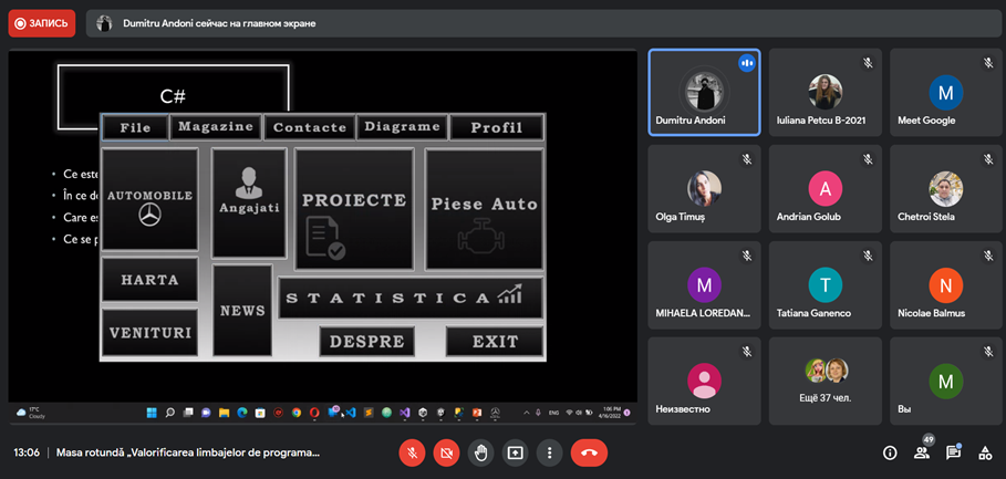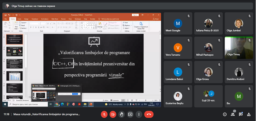 În data de 16 aprilie 2022, în cadrul Zilei Ușilor Deschise, catedra Informatică și Tehnologii Informaționale în Instruire din cadrul Facultății Științe ale Educației și Informatică a realizat Masa rotundă „Valorificarea limbajelor de programare C/C++, C# în învățământul preuniversitar din perspectiva programării vizuale” (6 ore).