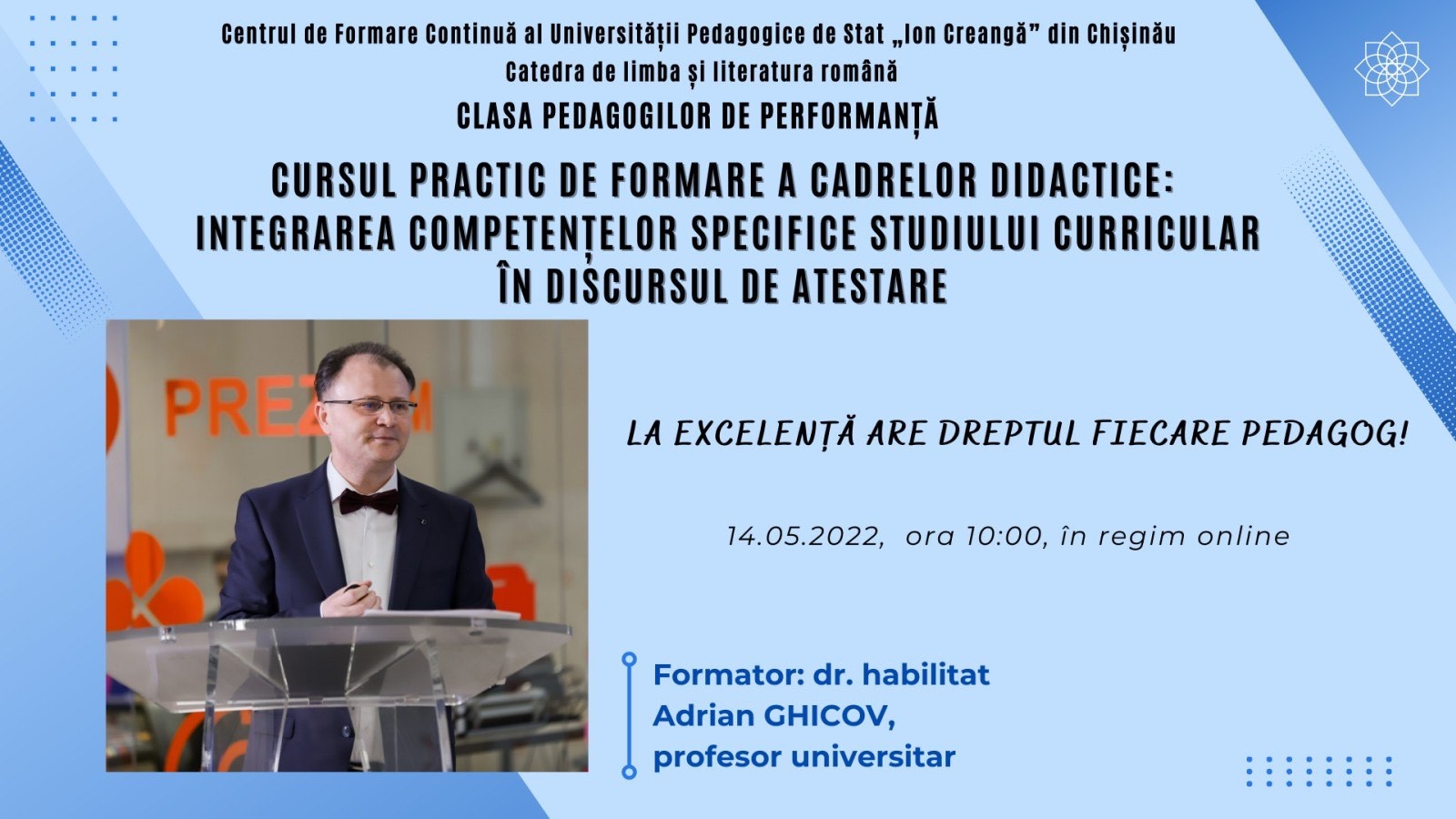 Astăzi, în cadrul Centrului de Formare al UPSC, cadrele didactice din Republica Moldova și România au beneficiat de consilierea expertului Adrian Ghicov, șeful Catedrei de limba și literatura română a UPSC, în problemele Integralității științifice și didactice ale probelor de atestare.