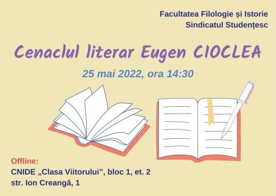Studenții Facultății de Filologie și Istorie, activi, insipirați, tineri și neliniștiți invită toate persoanele pasionate de Ars Poetica la o nouă întrunire în cadrul Cenaclului Literar, care se va desfășura în data de 25 mai, ora 14:30, în sala „Clasa Viitorului”, UPSC, bloc 1, et. 2, str. Ion Creangă, 1. […]