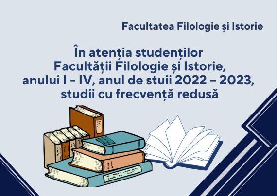 Studenții anului I și IV de la toate programele de studii sunt invitați la orele de curs conform Calendarului universitar: Anul I – 04 octombrie 2022, sala 512 (blocul I), ora 14:30; Anul IV – 11 octombrie 2022 – conform orarului. Orele de curs vor fi desfășurate cu prezența fizică […]