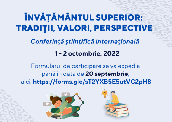 Universitatea Pedagogică de Stat „Ion Creangă din Chișinău organizează conferinţa ştiinţifică internaţională: Învățământul superior: tradiţii, valori, perspective, în data de 1 – 2 octombrie 2022. Evenimentul are ca scop reunirea experților naționali și internaționali din domeniul educației, reprezentanților ai învățământului general și superior, ai organizațiilor de cercetare, factorilor de decizie […]