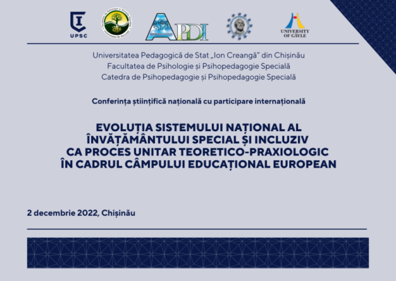 UNIVERSITATEA PEDAGOGICĂ DE STAT „ION CREANGĂ” DIN CHIŞINĂU FACULTATEA DE PSIHOLOGIE ŞI PSIHOPEDAGOGIE SPECIALĂ CATEDRA DE PSIHOPEDAGOGIE ȘI PSIHOPEDAGOGIE SPECIALĂ organizează Conferința științifică națională cu participare internațională EVOLUȚIA SISTEMULUI NAȚIONAL AL ÎNVĂȚĂMÂNTULUI SPECIAL ȘI INCLUZIV CA PROCES UNITAR TEORETICO-PRAXIOLOGIC ÎN CADRUL CÂMPULUI EDUCAȚIONAL EUROPEAN (50 DE ANI DE ACTIVITATE A […]
