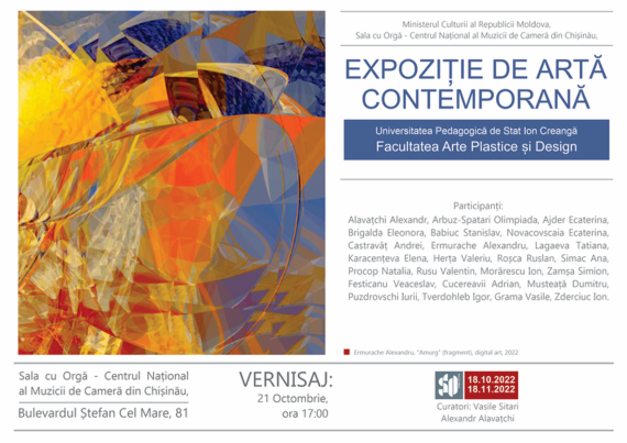 Facultatea Arte Plastice și Design, UPSC, vă invită la vernisajul expoziției de artă contemporană, organizată de profesorii catedrelor Arta Decorativă; Pictură; Studiul artelor, Grafica și Metodologia instruirii a facultății, vineri, 21 octombrie 2022, ora 17:00 în Sală cu Orgă, Chișinău și poate fi urmărit până în data de 18 noiembrie […]