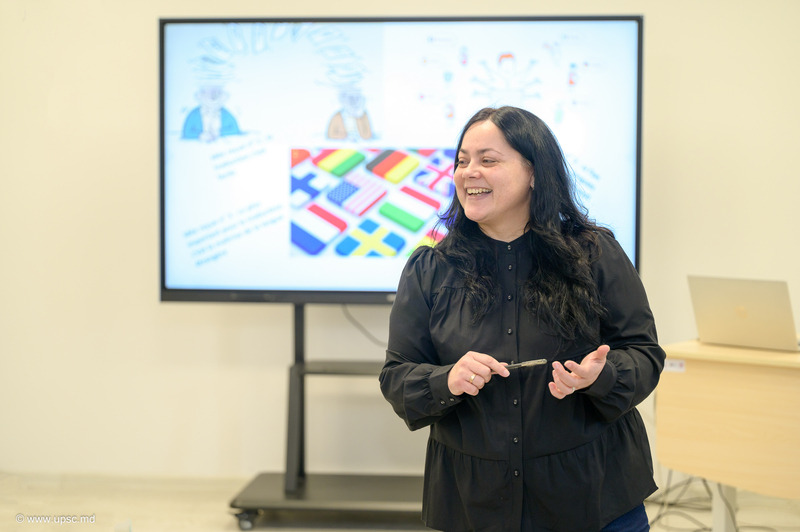 La formatrice Natalia Mucerschi, enseignante à l’Université d’État de Moldova, traductrice et interprète, a animé parfaitement l’ « Atelier spécialisé de traduction et interprétation pour les étudiants futurs profs de FLE », en dévoilant quelques secrets professionnels et en donnant la possibilité aux étudiants de faire des exercices de traduction et d’interprétation. À leur tour, les étudiants ont posé des questions pour pouvoir mieux découvrir cette activité complémentaire pour leur carrière.