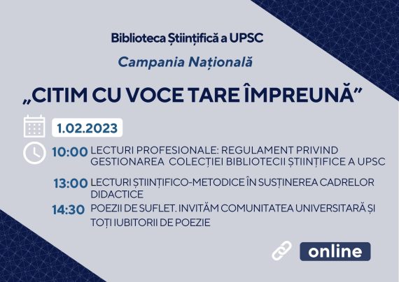 Campania Națională „Citim cu voce tare împreună” este organizată anual și celebrează Ziua Internațională a Cititului Împreună” ( WORLD READ ALOUD DAY (WRAD), inițiativă globală promovată de către organizația LitWorld, începând cu anul 2010. Ziua Internațională a Cititului Împreună este marcată anual, în data de 1 februarie, de milioane de […]