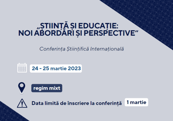 Universitatea Pedagogică de Stat „Ion Creangă” din Chișinău organizează Conferința Științifică Internațională „ȘTIINȚĂ ȘI EDUCAȚIE: NOI ABORDĂRI ȘI PERSPECTIVE”, care va avea loc pe 24-25 martie 2023, în regim mixt. La evenimentul științific consacrat problemelor actuale, realizărilor și perspectivelor de dezvoltare în cadrul științelor sociale, umanistice, exacte, al științelor naturii […]