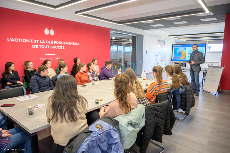 Formatorii invitați, domnul Andrei RUSNAC, Vicepreședinte pentru Digitalizare în cadrul Asociației „Digital Flower” și doamna Ana BULAT-GUZUN, doctor în științe ale educației, Facultatea de Limbi și Literaturi Străine, Catedra Filologie Romanică, UPSC, le-au explicat studenților ce este securitatea online și care sunt problemele care derivă din aceasta, noțiunile de bază pentru dezvoltarea obiceiurilor sănătoase pe internet și instrumente pentru o mai bună protecție cibernetică.