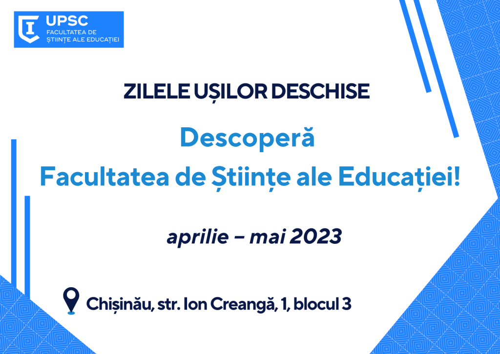 Facultatea Științe ale Educației, UPSC, organizează în perioadă aprilie-mai, 2023, Zilele Ușilor deschise cu genericul „Descoperă Facultatea Științe ale Educației!”!