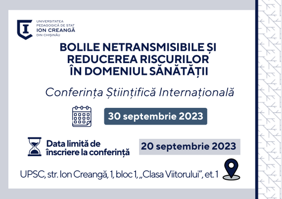 Universitatea Pedagogică de Stat „Ion Creangă” din Chișinău organizează Conferința Științifică Internațională „Bolile netransmisibile și reducerea riscurilor în domeniul sănătății” care va avea loc pe 30 septembrie 2023 Locația conferinței: Universitatea Pedagogică de Stat „Ion Creangă” din Chișinău, str. Ion Creangă, 1, bloc 1, „Clasa Viitorului”, etajul 1 Evenimentul are […]