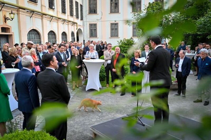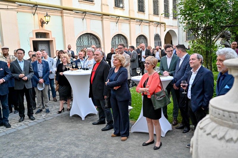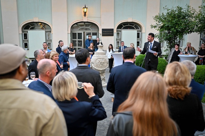 Recepția organizată în curtea Muzeului Brukenthal din Piața Mare a fost deschisă de dl. Alexandru Constantin Chituță, manager interimar. Au luat cuvântul dl. Mircea Dorin Crețu, prefectul județului Sibiu și doamna primar Astrid Cora Fodor, primarul Municipiului Sibiu și dl. Traian Hristea, secretar de stat al Ministerului Afacerilor Externe.