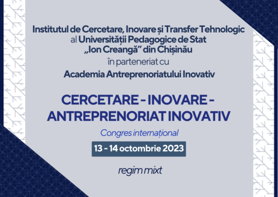 Institutul de Cercetare, Inovare și Transfer Tehnologic al Universității Pedagogice de Stat „Ion Creangă” din Chișinău în parteneriat cuAcademia Antreprenoriatului Inovativ, organizează, în perioada 13 – 14 octombrie 2023, Congresul internațional CERCETARE-INOVARE-ANTREPRENORIAT INOVATIV, în regim mixt. Evenimentul este organizat, în mod special, cu scopul diseminării experienței acumulate de cercetători, cadre […]