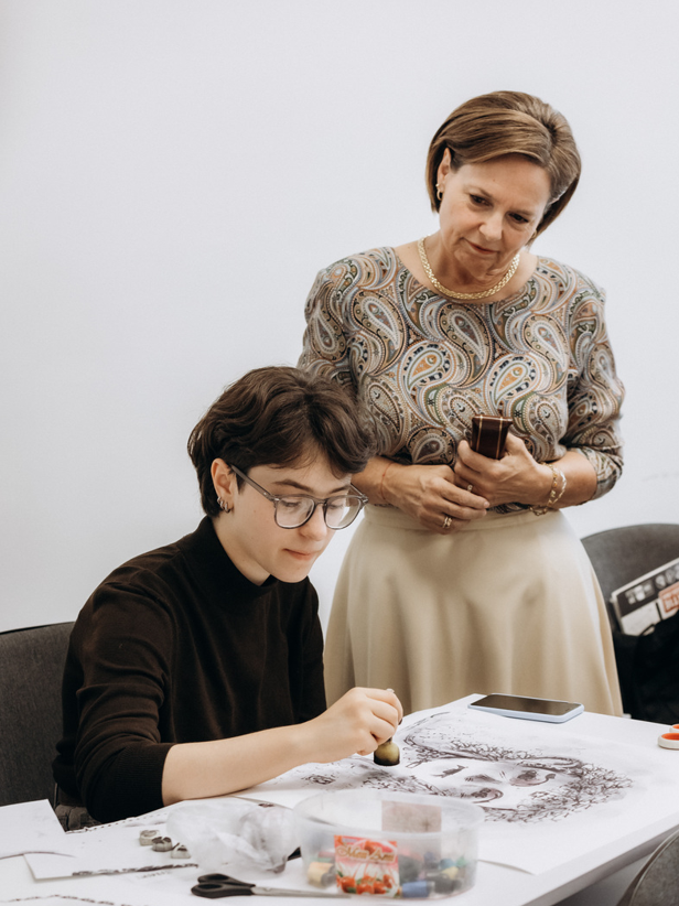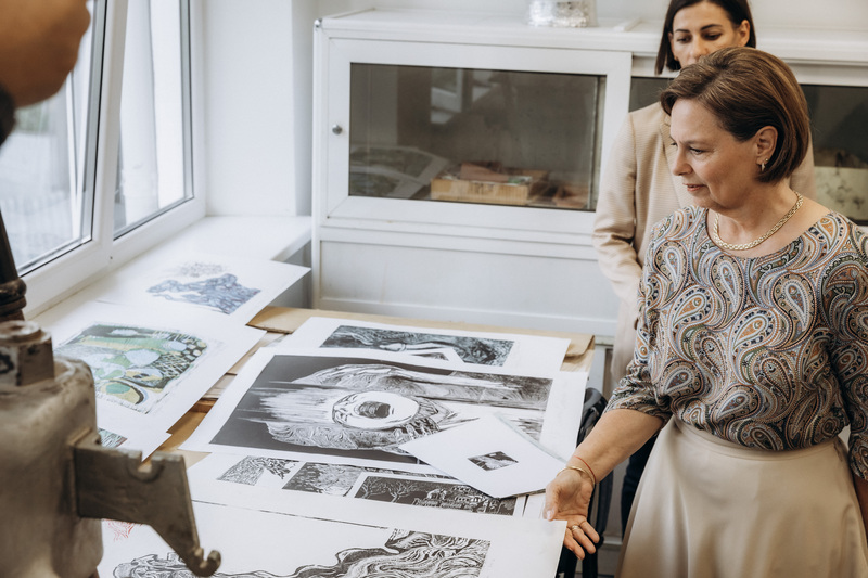 Oaspeții au fost întâlniți cu căldură și entuziasm de către echipa academică a Facultății, studenți, masteranzi, cadre didactice. În timpul vizitei, Alteța Sa Principesa Sofia a avut ocazia să viziteze expozițiile noastre de artă și să interacționeze cu studenții, în cadrul atelierelor de studiu. Principesa a manifestat un interes profund pentru creația tineretului studios și pentru proiectele inovatoare ale Facultății, acestea fiind exemple de bune practici nu doar la nivel național, dar și internațional.