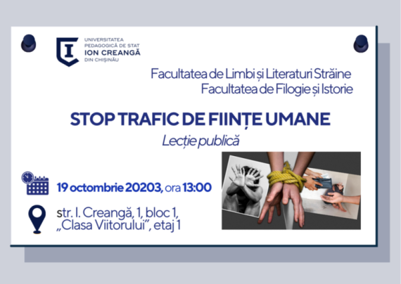 În contextul marcării Zilei Europene de luptă împotriva traficului de fiintțe umane, Facultatea de Limbi și Literaturi Străine, în colaborare cu Facultatea de Filogie și Istorie, organizează o lecție de informare, pe tema STOP TRAFIC DE FIINȚE UMANE. Evenimentul va fi ținut de către dl. Vitalie Ionașcu, dr. conf., decan […]