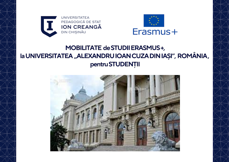 Mobilitate de studii Erasmus +, la Universitatea „Alexandru Ioan Cuza din Iași”, România, pentru studenți