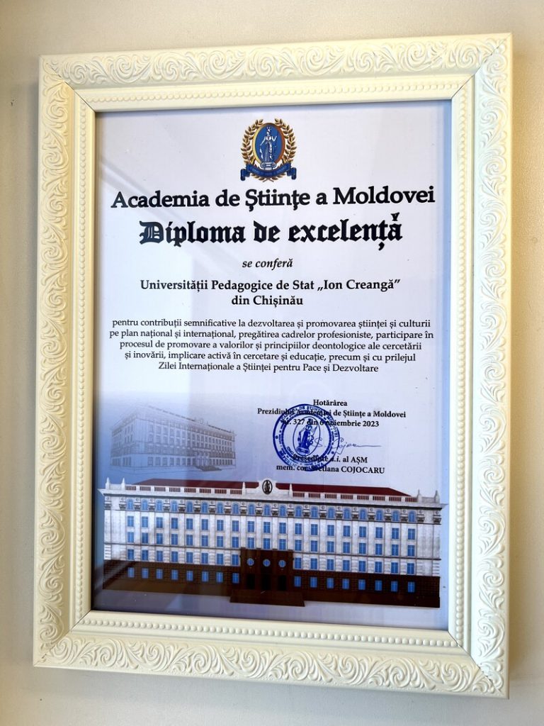 Academia de Științe a Moldovei a acordat Universității Pedagogice de Stat „Ion Creangă” din Chișinău Diplomă de excelență!
