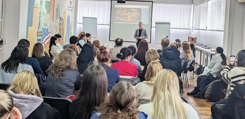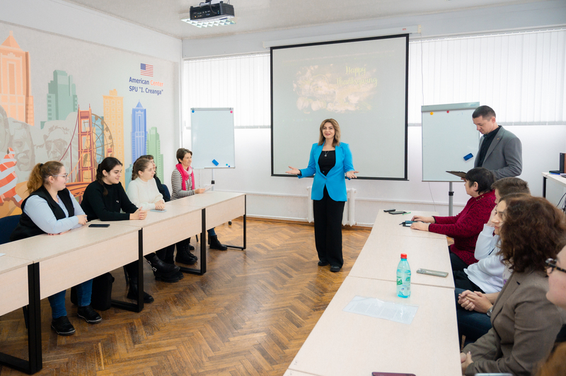 Astăzi, pe 23 noiembrie 2023, Catedra de Filologie Engleză de la Facultatea de Limbi și Literaturi Străine a fost gazda celui de-al doilea eveniment din cadrul „Zilelor Culturii Americane”la Universitatea Pedagogică de Stat „Ion Creangă” din Chișinău – concursul de recital și interpretare cu tema „Fall… Being Thankful For…”