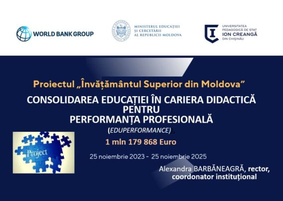 La 14 decembrie 2023, în cadrul Universității a avut loc lansarea subproiectului Consolidarea educației în cariera didactică pentru performanța profesională (EDUPEERFORMANCE) câștigat de UPSC în cea de-a 2-a rundă de granturi din cadrul Proiectului „Învățământul Superior din Moldova” finanțat de Banca Mondială. Obiectivul general al subproiectului este îmbunătățirea programelor și a condițiilor […]