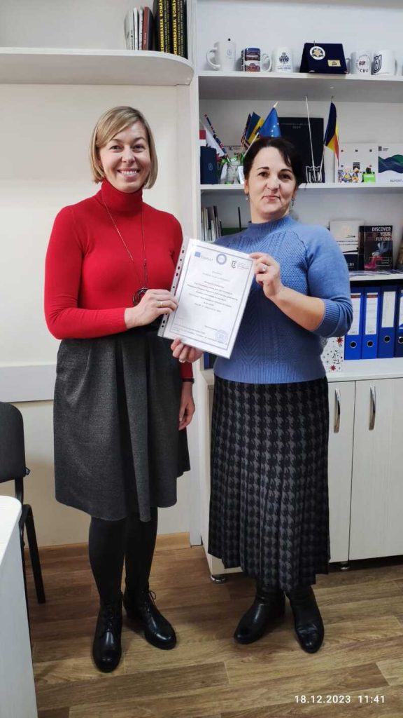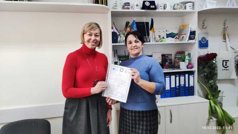 În perioada 18 – 22 decembrie 2023, doamna Ewa Wasielewska, șefa Biroului Relații Internaționale a Universității de Management al Resurselor Umane din Konin, Polonia, a efectuat o mobilitate de formare la Secția Relații Internaționale și Managementul Proiectelor a UPSC.