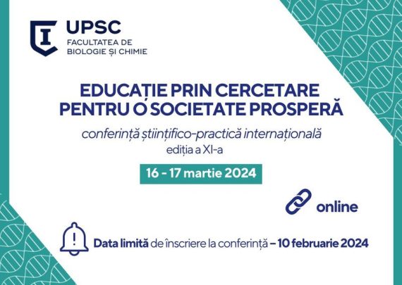 Facultatea de Biologie şi Chimie a Universității Pedagogice de Stat „Ion Creangă” din Chișinău organizează conferinţa ştiinţifico-practică internațională „Educație prin cercetare pentru o societate prosperă”, ediția a XI-a. Evenimentul se va desfășura pe 16 – 17 martie 2024, în regim online. Evenimentul este organizat în mod special cu scopul diseminării experienței […]