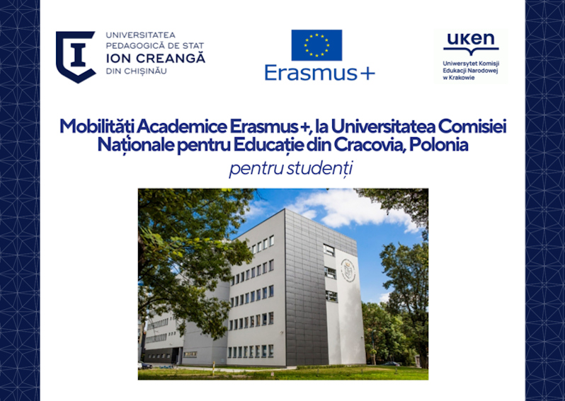 Secția Relații Internaționale și Managementul Proiectelor a UPSC anunță depunerea dosarelor de candidatură pentru 2 burse de studii (5 luni) pentru studenții din ciclurile Licență (studenții anului I si ai anilor terminali nu sunt eligibili) și Masterat la Universitatea Comisiei Naționale pentru Educație din Cracovia, Polonia pentru semestrul I al anului academic 2024-2025.