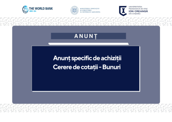 Notificarea de atribuire a contractului Data limită de depunere a ofertelor: 28.03.2024, ora 11.00 Denumirea ofertanților Data de recepționare a cotației Numărul lotului pentru care sa depus cotația Valoarea evaluată „SC D&D CONSULTANTS GRUP” SRL 28.03.2024 Lotul nr.1 20,429.82 EUR, echivalent 390,023.65 MDL Lotul 1: „SC D&D CONSULTANTS GRUP” SRL, […]