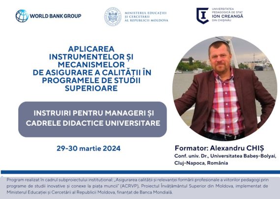 Stimați membri ai comunității academice, Dăm startul unor noi sesiuni de instruire privind aplicarea instrumentelor și mecanismelor de asigurare a calității și monitorizarea programelor de studii superioare din perspectiva racordării acestora la solicitările pieței muncii. Pentru această activitate sunt planificate două zile: 29-30 martie 2024, iar durata totală instruirilor este de 8 ore. Sunt […]
