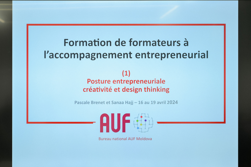 În perioada 16 – 19 aprilie 2024, Biroul Național AUF-Moldova organizează o formare de formatori pe tema „Pre-incubare antreprenorială” în cadrul axei „Angajabilitate și Antreprenoriat” a strategiei AUF 2021-2025.