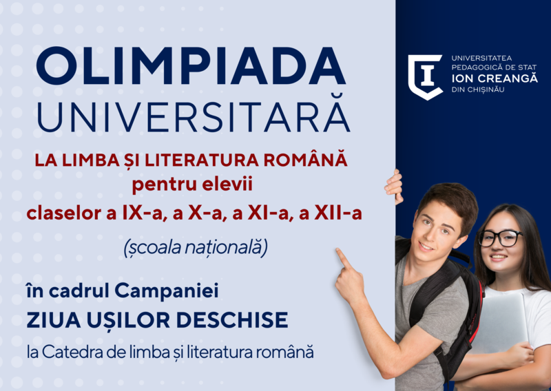 Catedra de limba și literatura română a Facultății de Filologie și Istorie anunță Olimpiada Universitară la Limba și Literatura Română, sesiunea 2024! Evenimentul se înscrie în cadrul Campaniei Ziua Ușilor Deschise.