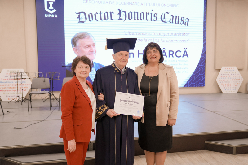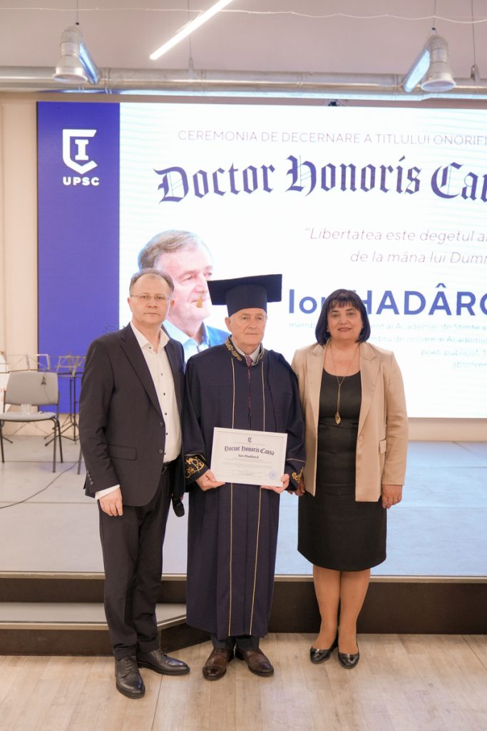 În cadrul ceremoniei, prezentă la eveniment, dna Alexandra BARBĂNEAGRĂ, rector al UPSC, a reiterat contribuția lui Ion HADÂRCĂ în promovarea educației către generațiile în creștere și i-a adresat, cu onoare și gratitudine, sincere felicitări în numele întregii comunități academice a Universității.