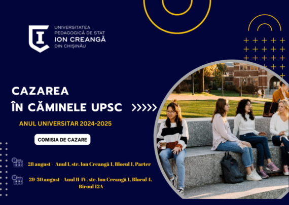 Dragi studenți ai anului I, ciclul licență,Distinse cadre didactice, Universitatea Pedagogică de Stat „Ion Creangă” din Chișinău (UPSC) anunță cu deosebită plăcere ceremonia de inaugurare a anului universitar 2024-2025, cu genericul „Valori național-europene: rezonanțe crengiene”. ? Data: 2 septembrie 2024⏰ Ora: 11:00? Locația: str. Ion Creangă, 1, et. 1, sala […]