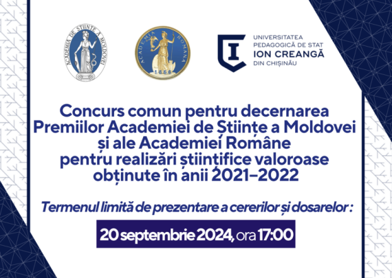 În conformitate cu Hotărârea Prezidiului AȘM nr. 106 din 26 iunie 2024, se anunţă concursul bianual în vederea decernării Premiilor Academiei Române și ale Academiei de Ştiinţe a Moldovei pentru realizări științifice valoroase obținute în anii 2021–2022: – Premiul în domeniul științelor fundamentale; – Premiul în domeniul științelor medicale; – Premiul […]
