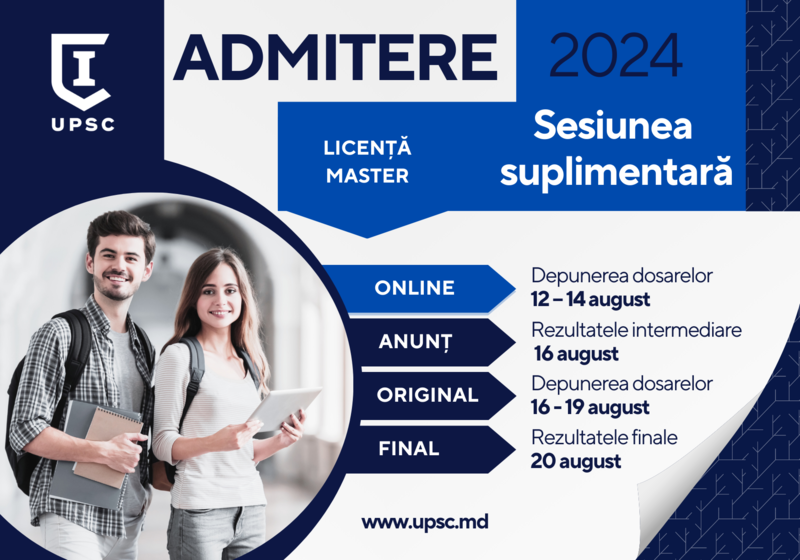 Vă anunțăm despre desfășurarea sesiunii suplimentare de Admtiere 2024, cu următoarele termene: