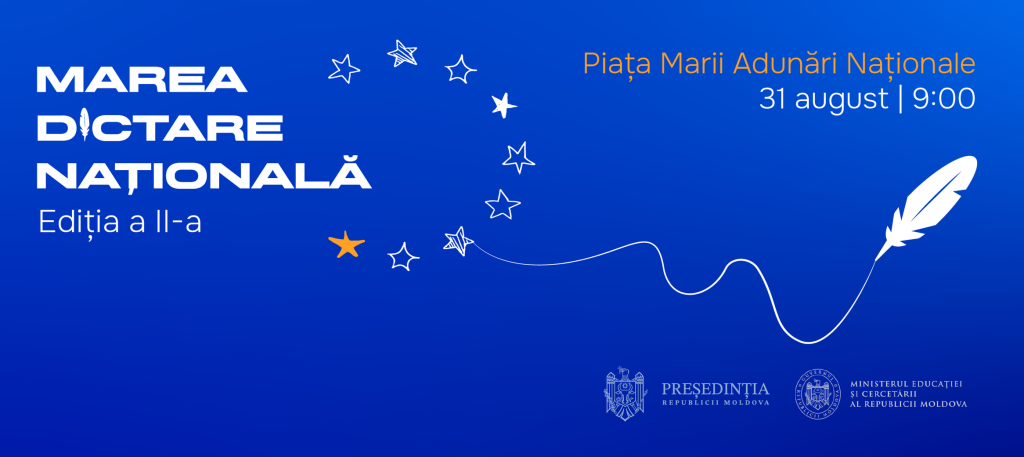 Ministerul Educației și Cercetării al Republicii Moldova anunță înscrierea la Marea Dictare Națională, ediția a II-a, care va avea loc pe 31 august 2024, ora 9:00, în Piața Marii Adunări Naționale.