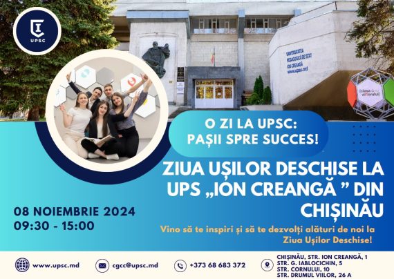 Universitatea Pedagogică de Stat „Ion Creangă” din Chișinău organizează „Ziua Ușilor Deschise”, în data de 8 noiembrie 2004, între orele 9:30 – 15:00, în campusul universitar UPSC. În context, UPSC invită liceenii să participe în activitățile proiectate pentru „Ziua ușilor deschise”. Scopul evenimentului este orientat spre informarea potențialilor studenți UPSC […]